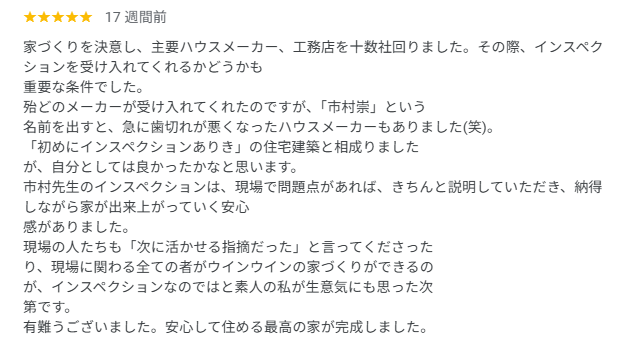 ホームインスペクションやインスペクターなど、ようやく耳にする機会が増えてきました。最近では、住宅会社自らが、第三者の検査を入れていますというフレーズも口にします。本来は施主が直接、利害関係のない第三者に「自邸の工事現場の検査を頼む」ことで有益性を得るのですが、業界では「本当の第三者」が少ないのが実情です。