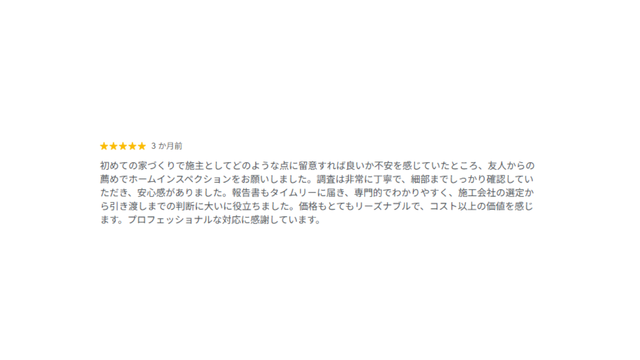 実際に新築工事現場を皆様の代わりに検査します。私たちがお客様の代理となり厳しく検査・改善を求めます。素人ではわかりえないポイントを逃さず、理想の家づくりを技術面でサポート致します。