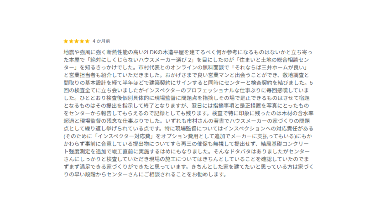 家を建てたい!と思ったけど、どこに頼めばいいのかわからない・・HPやテレビCMを観ると、どこも素晴らしい家だと思ってしまう。木造と鉄骨どちらがいいのか?大手なんだから、耐震性や気密性など性能スペックはどこも最高ランク?家づくりの超基本から、ハウスメーカーの商品特徴・選んじゃいけないハウスメーカーを教えます!過去のインスペクション実績から、優秀な営業マン情報も持っています。