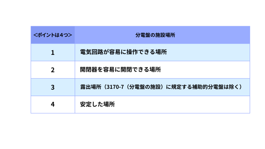 また、分電盤の設置に関して、内線規程では下記の通り定められています。