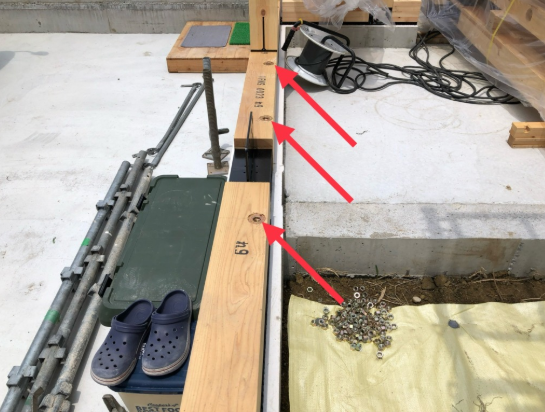 コンクリートを流し込む際にアンカーボルトがしっかり固定されていないと、コンクリートの圧力で浮き上がることがあります。