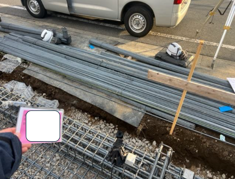 「基礎配筋検査のタイミングですが、基礎の鉄筋組み完了後で型枠組み前でお願いします」