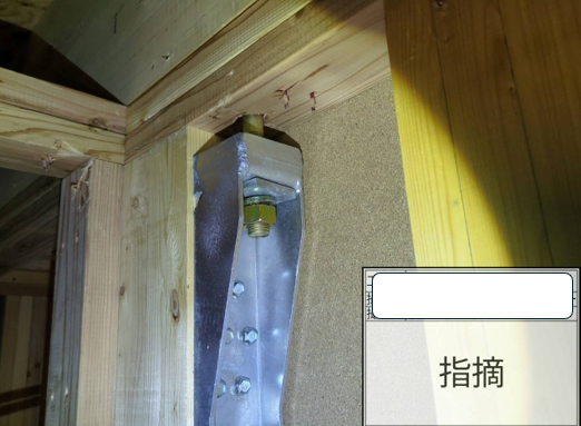 写真は、ホールダウン金物の締め込み不足です。