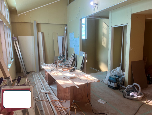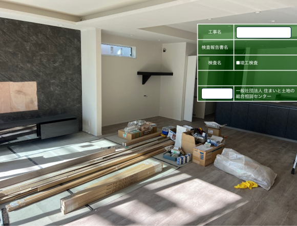 例:内部造作完了検査の場合、資材等が散乱し、足の踏み場もなく、材料が壁に立て掛け