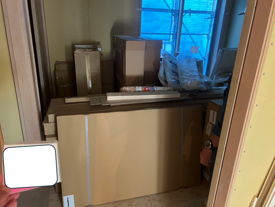 工程が間に合っていない、材料散乱、1部屋は材料で埋まっていましたから、ここまで材料が残っているという事は、作業が全く追いついていない事がわかります。