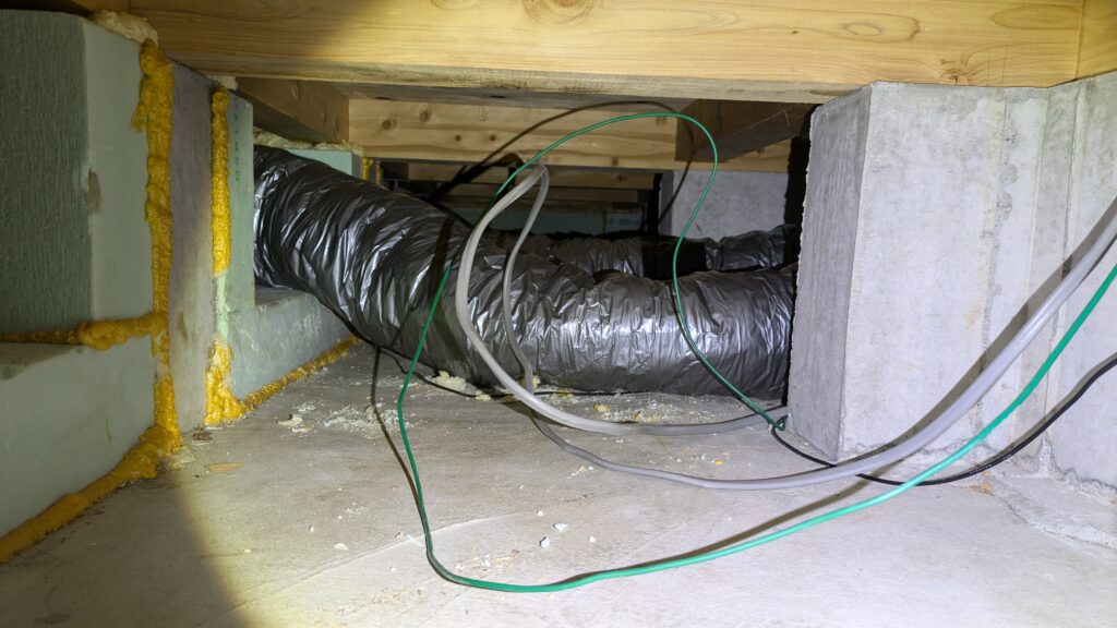 写真:床下点検経路に換気ダクト多数(著者撮影)