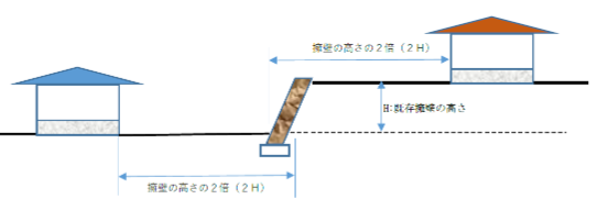 一般的に擁壁高さの2倍以上離すなどの対応が考えられます。