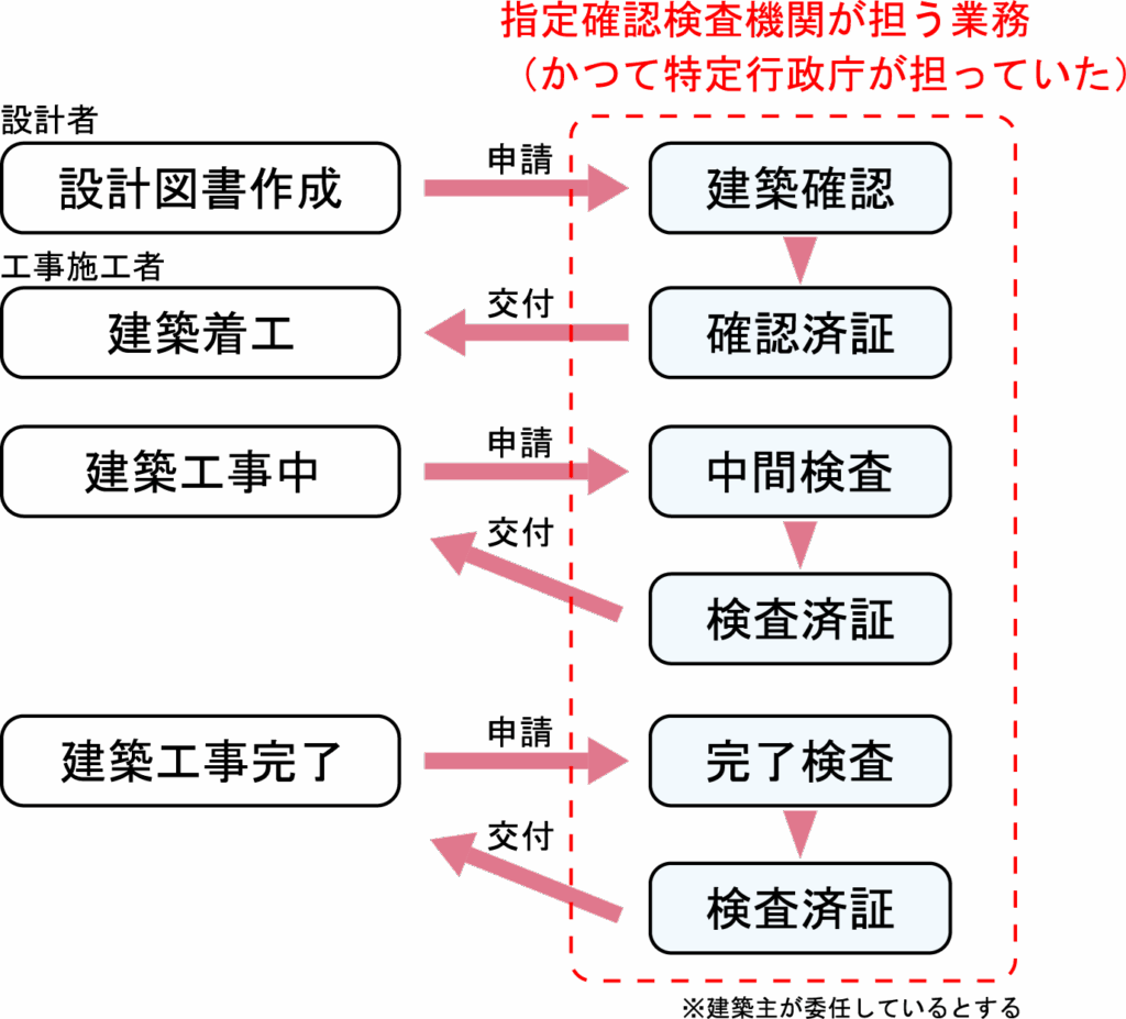 平成10年の建築基準法改正により、それまで特定行政庁の建築主事(一言で言えば役所)が行ってきた確認検査業務において、民間会社が審査・検査を行えるようになりました。これは、誰しもが好き勝手に家を建てていいわけではなく、「こういう家を建てたいんだけどいいですか?」というお伺いに対して、許可をもらった家を建てることができるお墨付きを、民間会社(指定確認検査機関)が出していいですよ!という事です。究極の第三者である(はずの)お役所から、民間会社にこの仕事が引き継がれることは、業界内では(悪い意味で)大事件です。
