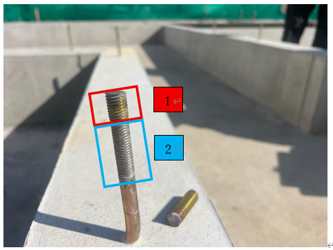 上記写真、赤枠で囲っている「1」の範囲は、ボルト切断後の残ったネジ部です。
