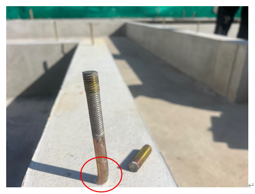 アンカーボルトと基礎天端取り合いの根元部分が曲がっていますね・・・