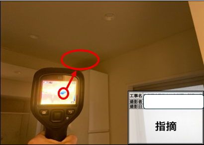 天井面は外気に接していますから、断熱材の施工が必要になりますが、サーモカメラでは