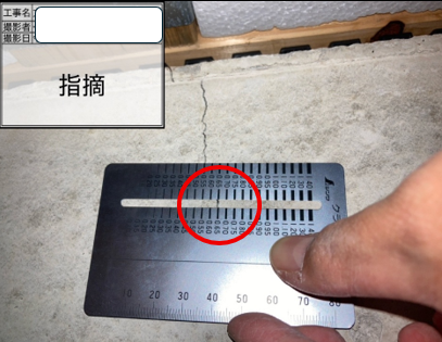 クラックスケールで計測し、クラック幅0.65ミリを確認しました。